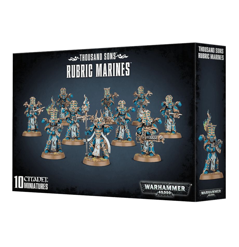 Ce kit plastique contient les pièces nécessaires pour assembler 10 Rubric Marines, armés de bolters Inferno ou de lance-flammes Warp. Une figurine peut être armée d’un canon Soulreaper, une peut porter une icône de flammes, et une peut être assemblée sous forme d’Aspiring Sorcerer, armé d’un sceptre de force et d’un pistolet bolter Inferno ou d’un lance-flammes Warp léger. Kit fourni avec 10 socles ronds Citadel de 32mm.